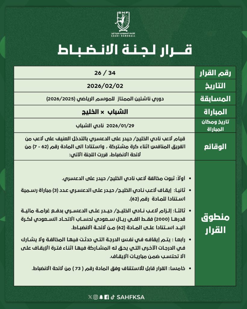 يخوض المنتخب السعودي الأول لكرة اليد، غدًا الجمعة 23 يناير 2026م، مواجهته الثانية في الدور الرئيسي من البطولة الآسيوية الـ22 للرجال، المقامة حاليًا في دولة الكويت، عندما يلتقي نظيره منتخب الإمارات عند الساعة الرابعة مساءً على صالة مجمع الشيخ سعد العبدالله.
