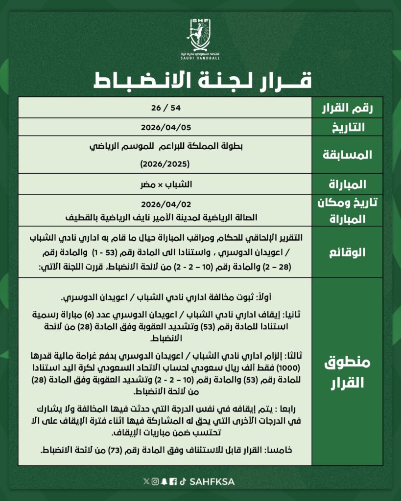 قرار لجنة الأنضباط (54)