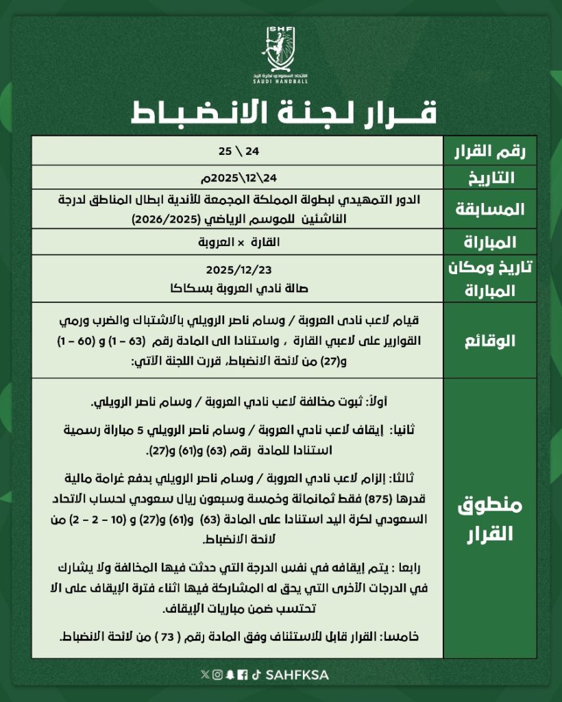 ومع ختام الدور الأول، تتوقف منافسات الدوري حتى 06 فبراير 2026م، استعدادًا لمشاركة المنتخب السعودي في البطولة الآسيوية للمنتخبات المقرر إقامتها في يناير 2026 بدولة الكويت.